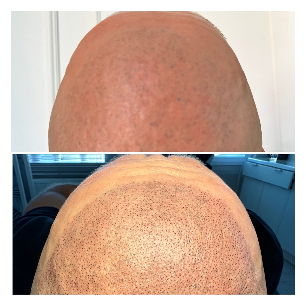 Pierwsze efekty mikropigmentacji skóry głowy widoczne są natychmiast po zakończeniu zabiegu. Czas gojenia trwa do 7 dni, natomiast okres wypłukiwania się nadmiaru barwnika i ustabilizowania ostatecznego koloru wynosi do 3 tygodni. Efekty optycznego zagęszczania włosów w zależności od pacjenta utrzymują się od dwóch do sześciu lat.